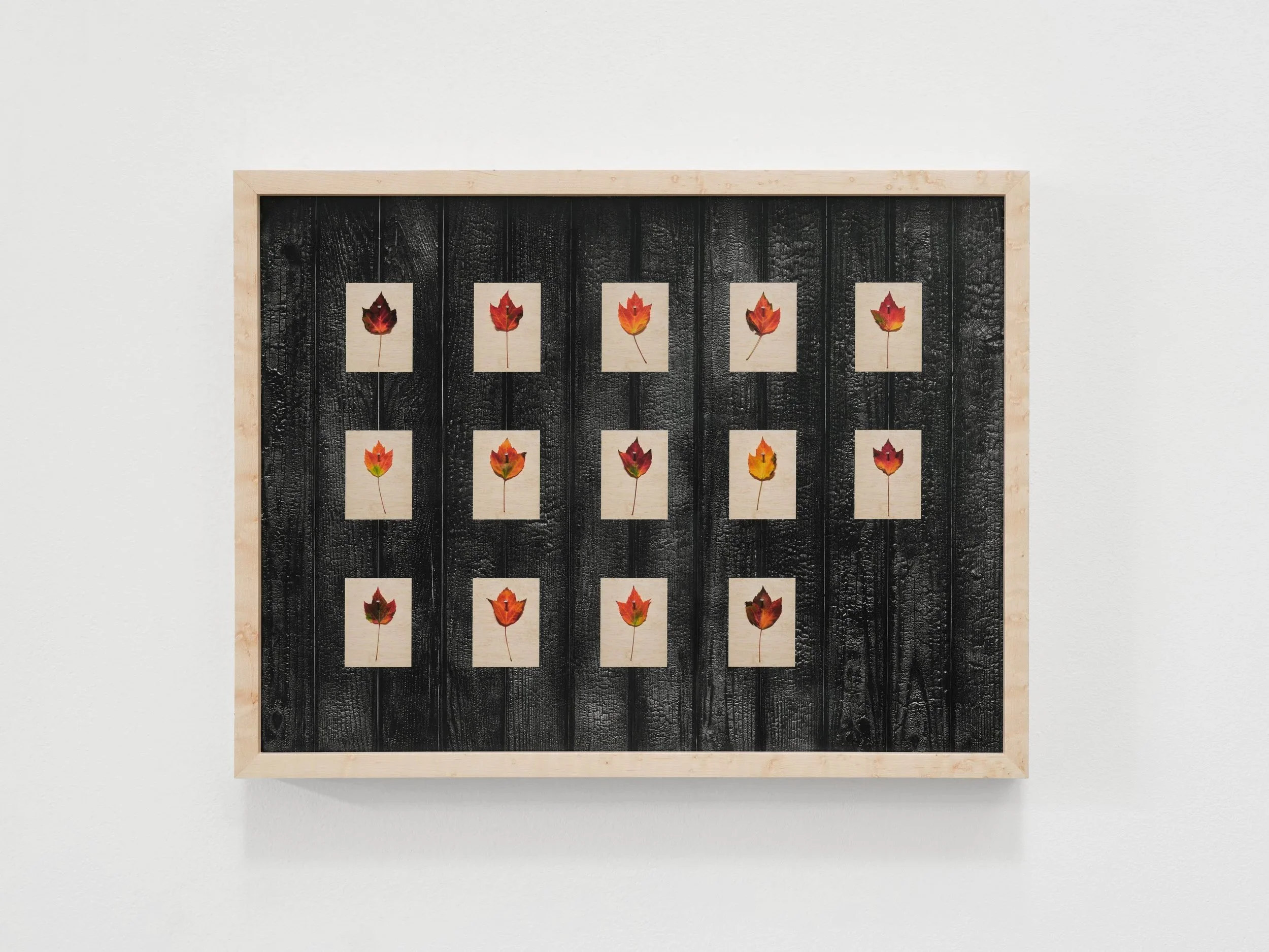 The sun, the moon, the burning sky, wood, archival pigment prints, glass, screws, wood stain, 2025