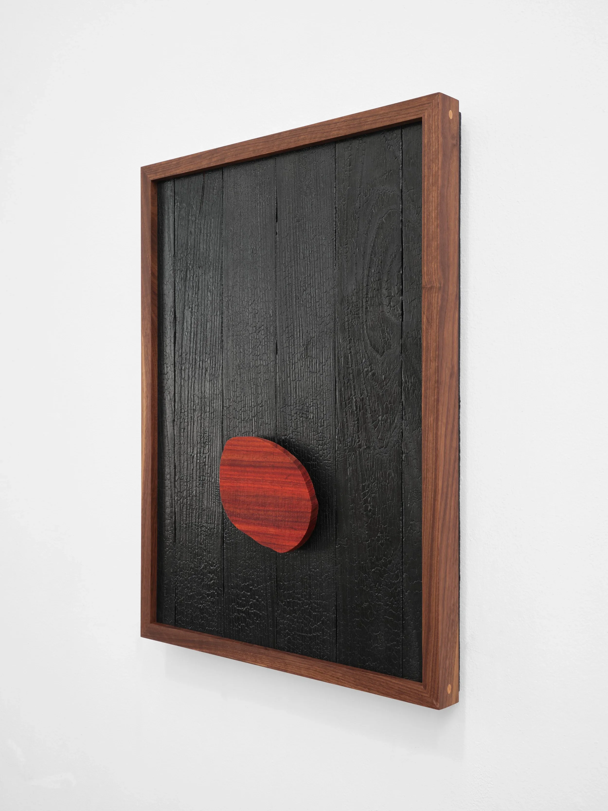 The Stone Holds Fire, charred red oak, archival pigment print, 4 x 6 feet, 2024