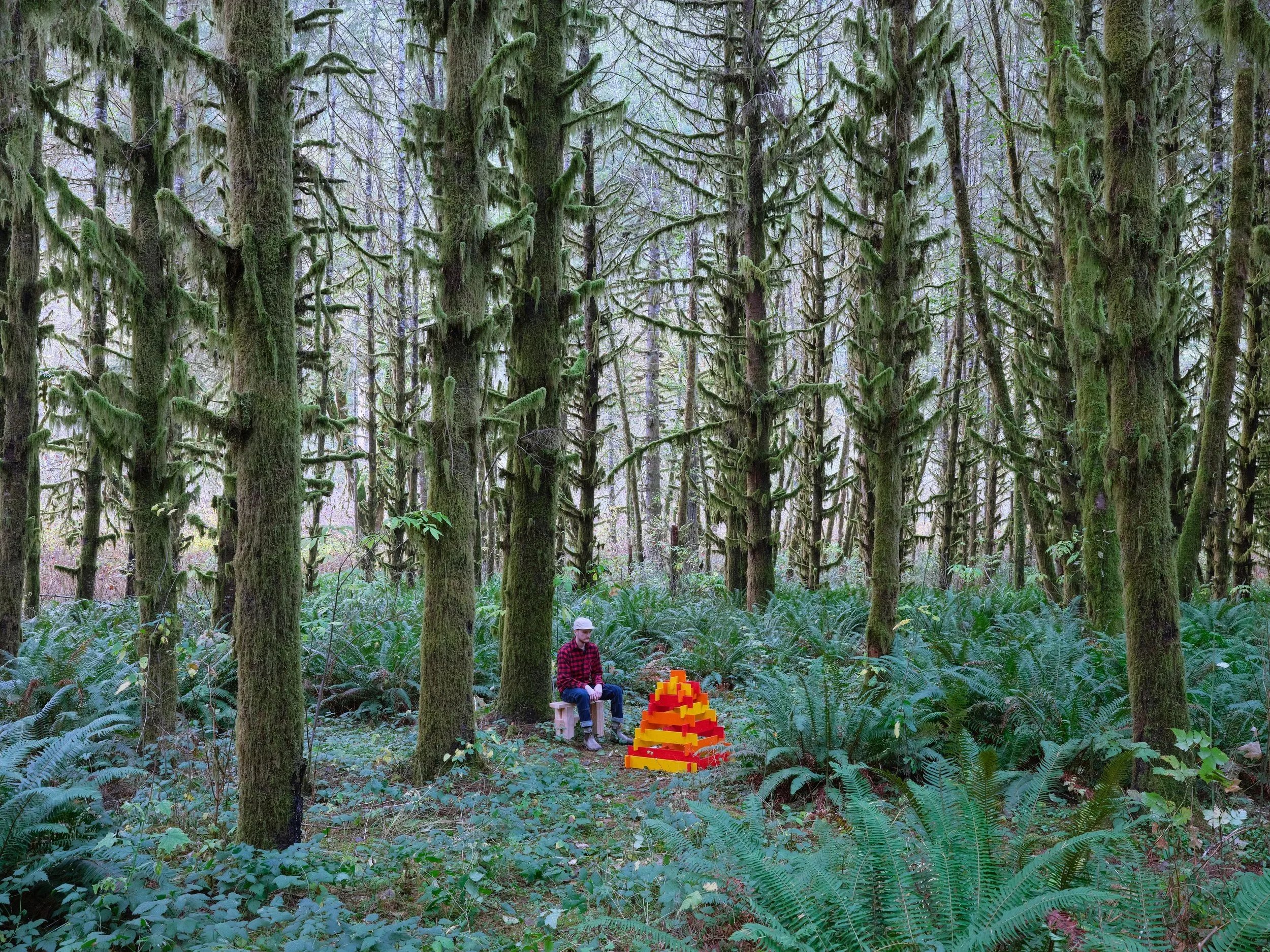 Job Site, wood, paint, painter’s tape, archival pigment prints, 3 x 4 feet, 2024