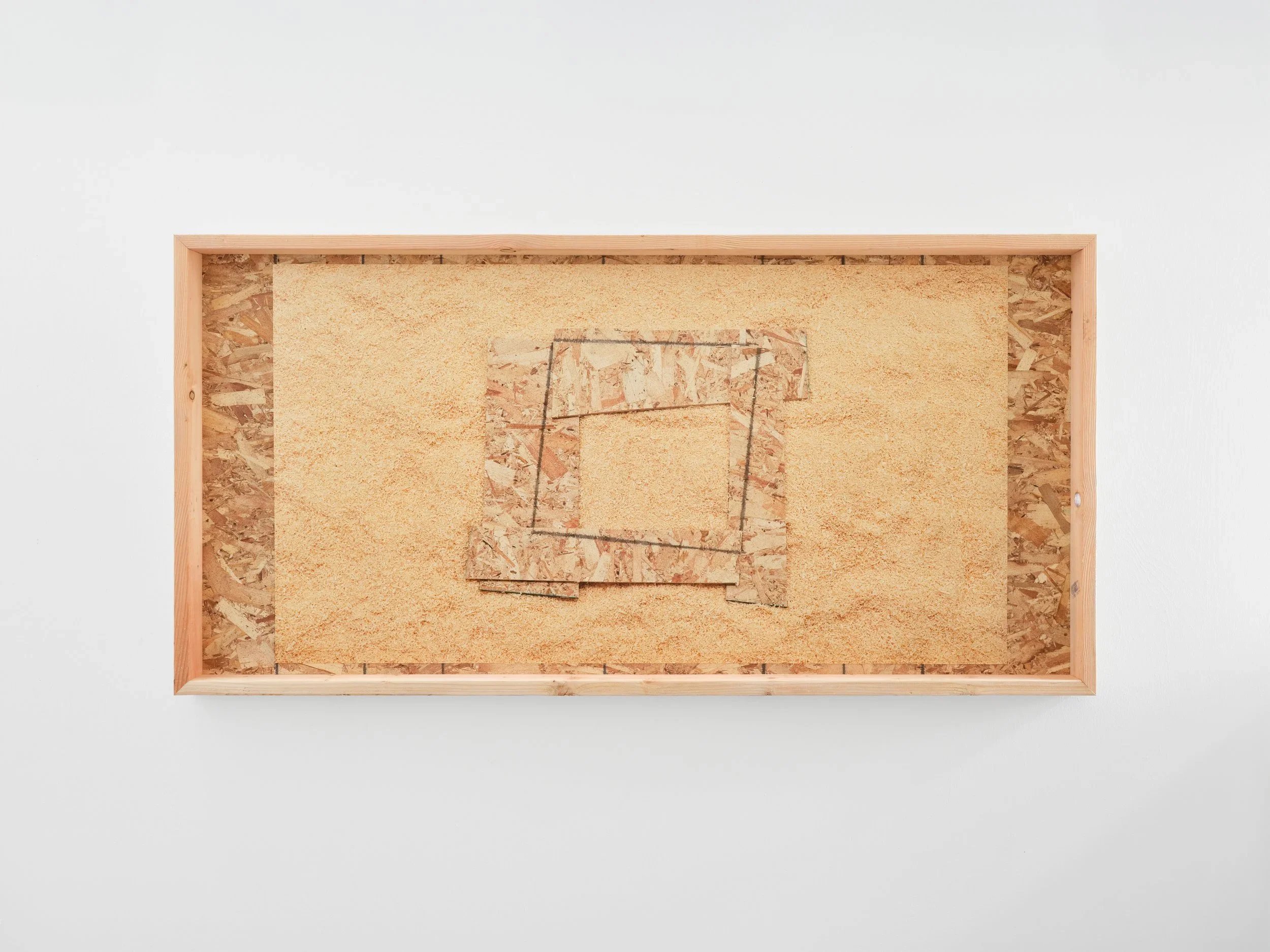 Framing Square, wood, archival pigment print, 4 x 8 feet, 2024