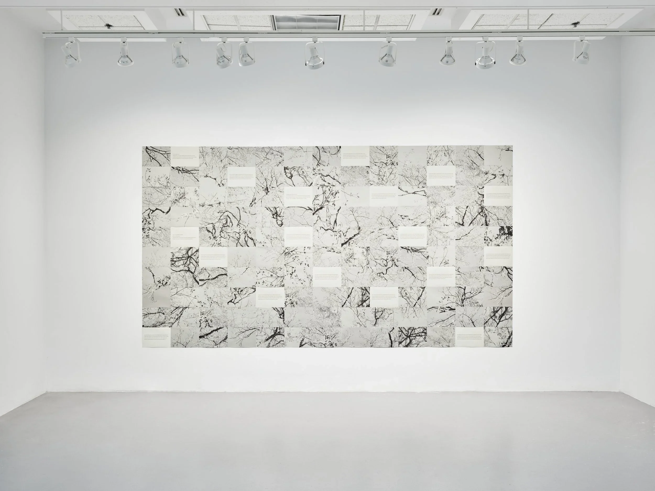 Epistolary Anthology, archival pigment prints on Kozo paper, steel nails, 12 x 7 feet, 2024