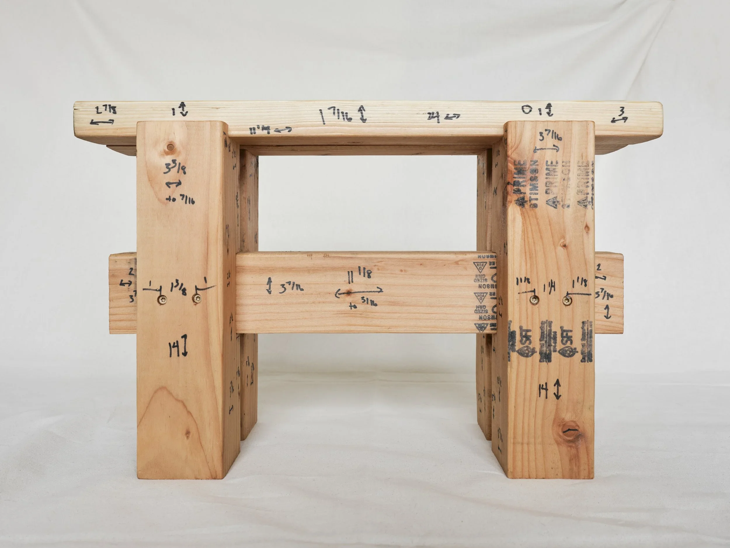 Construction Stool, douglas fir 2 x 4‘s and 4 x 4’s, sharpie, construction screws, hard wax oil, 15 x 24 x 8.5 inches, 2025