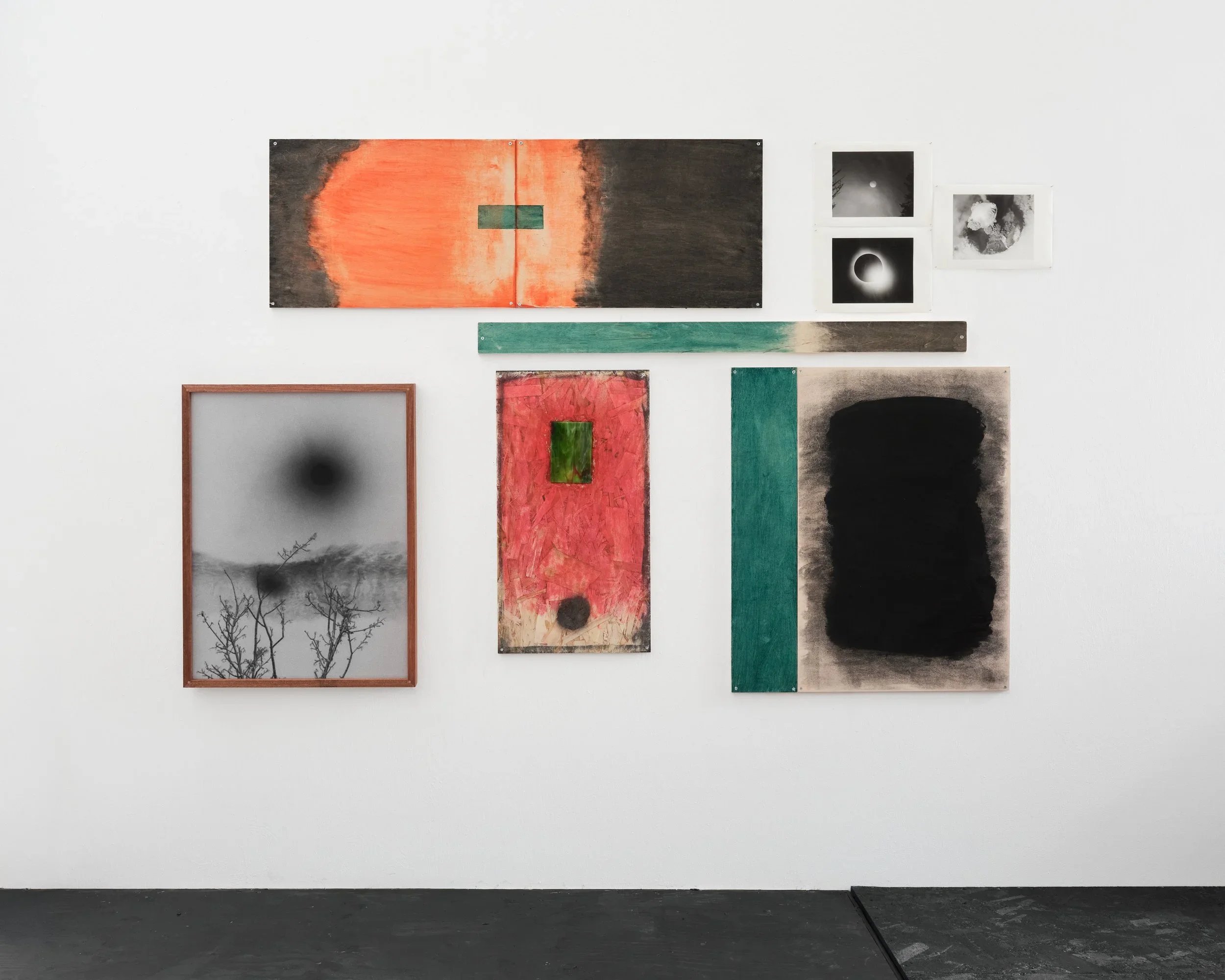 The sun, the moon, the burning sky, wood, archival pigment prints, glass, screws, wood stain, 2025