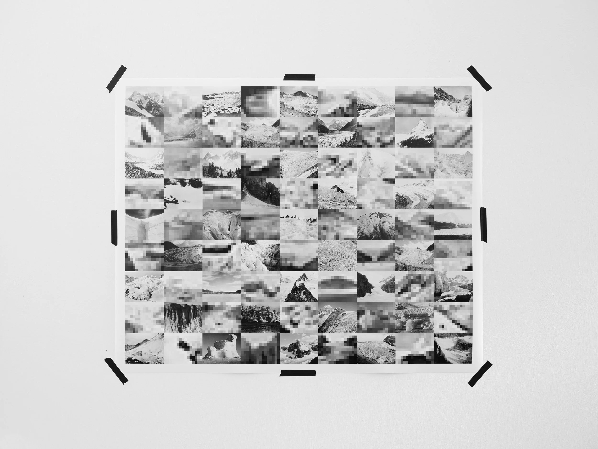 Softer than the hill behind, stronger than the wave below, archival pigment prints (overlays via custom generative software) 8 x 10 inches, 2025