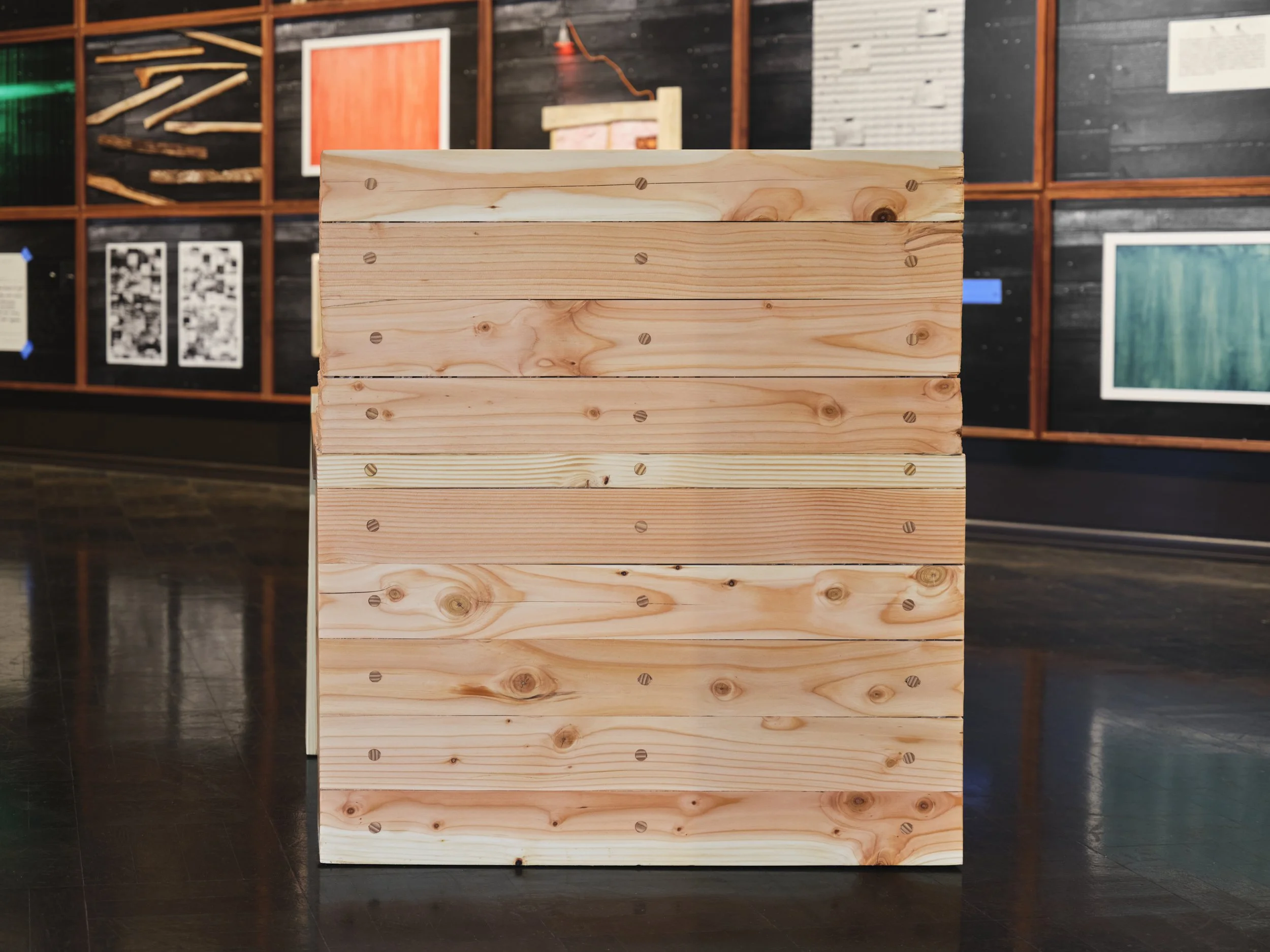 Block Chair, Douglas fir, beech, birch, southern cypress, eastern white ash, 3 x 3 x 3 feet, 2025