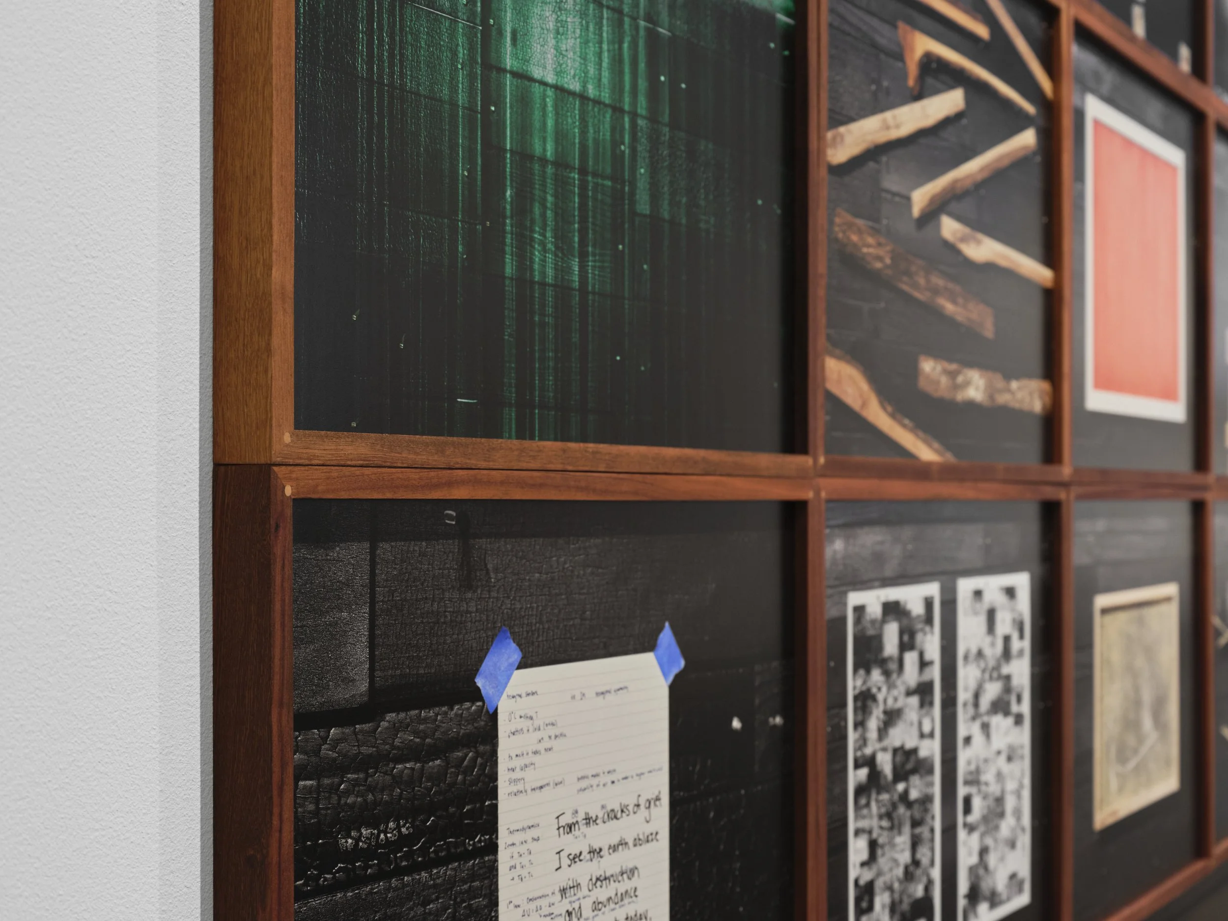 Building Blocks of an Altered Earth, archival pigment prints, handmade sapele frames with birch dowel splines, 15 x 8 feet, 2025